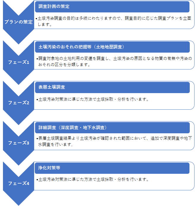汚染の由来を特定し、それに応じた試料採取方法を適用します。主な区分は以下のとおりです。